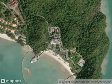 - 600-meter white sand beach on Langkawi's largest lagoon